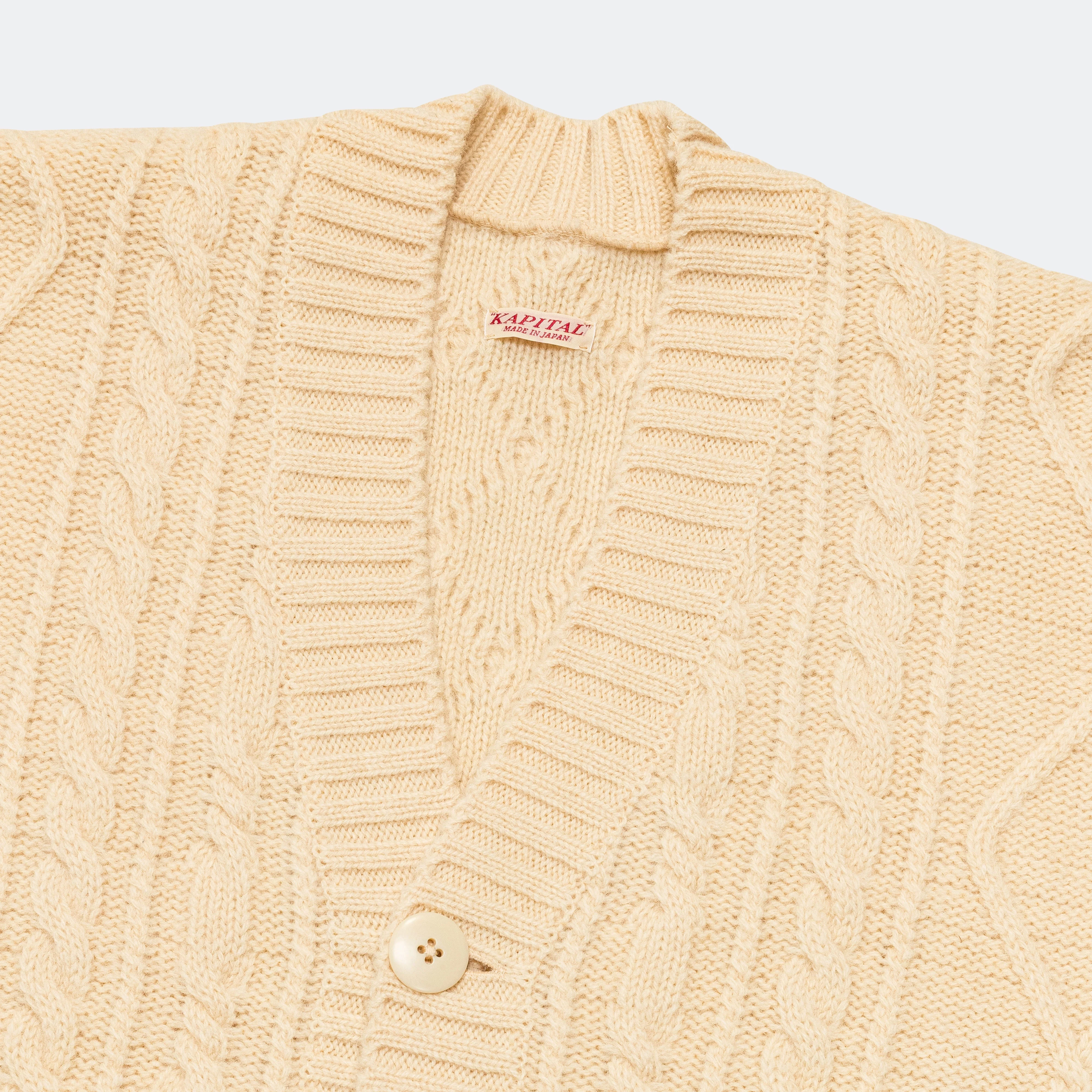 5G Wool Cable Knit PROFILE RAINBOWY Patch Cardigan - Nat