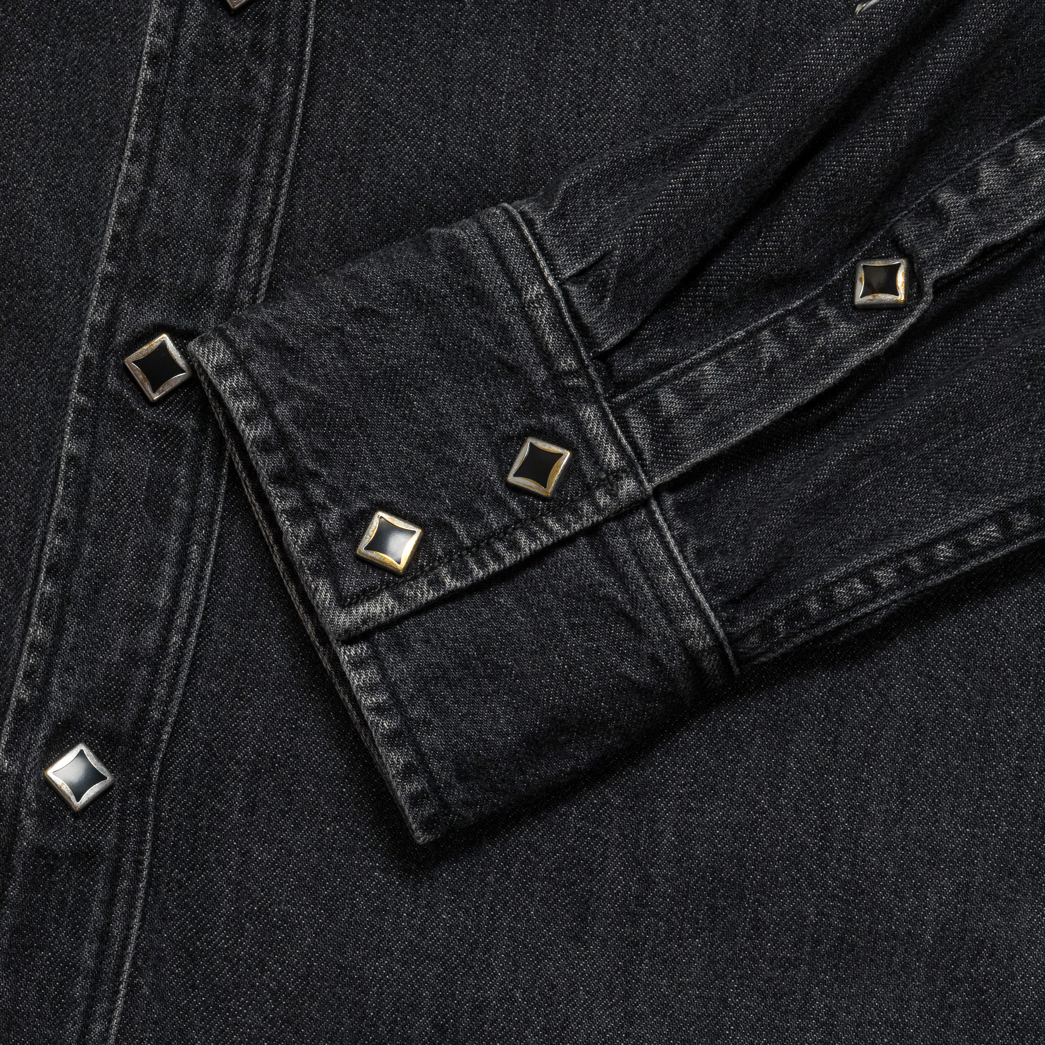 8ozBlack Denim Western Shirt (STUDS) - Black